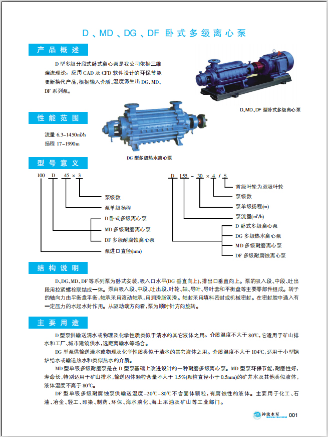 D、MD、DG、DF卧式多级离心泵